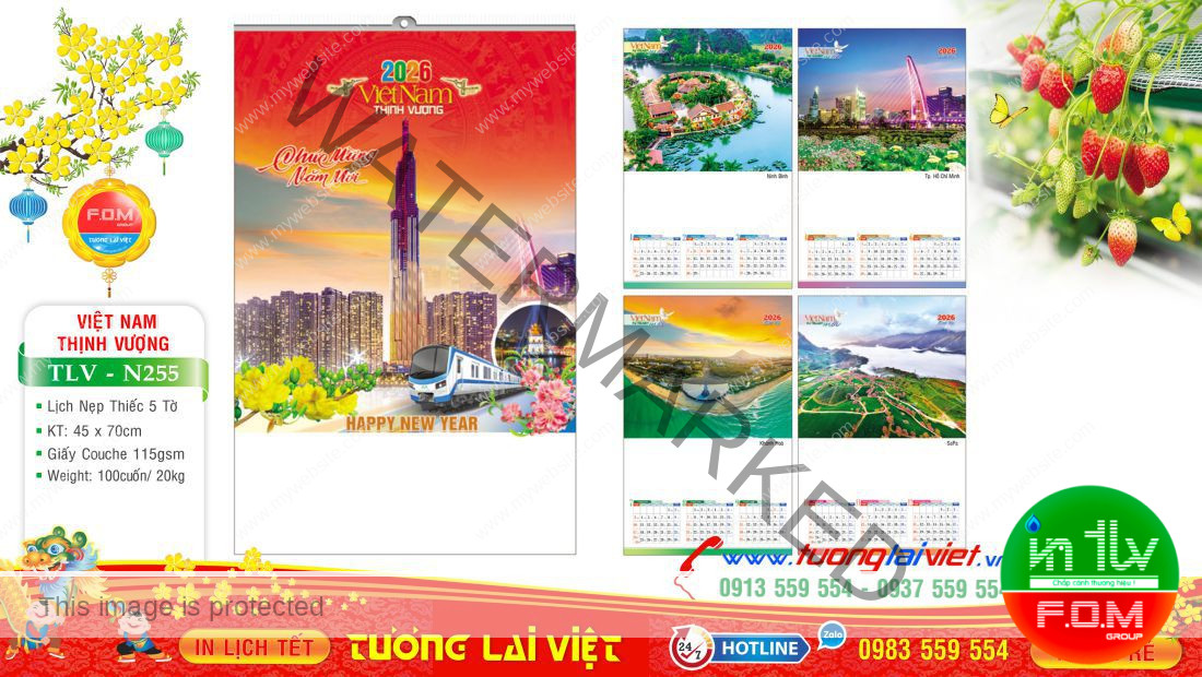 ➤ Lịch 5 tờ nẹp thiếc bao gồm: