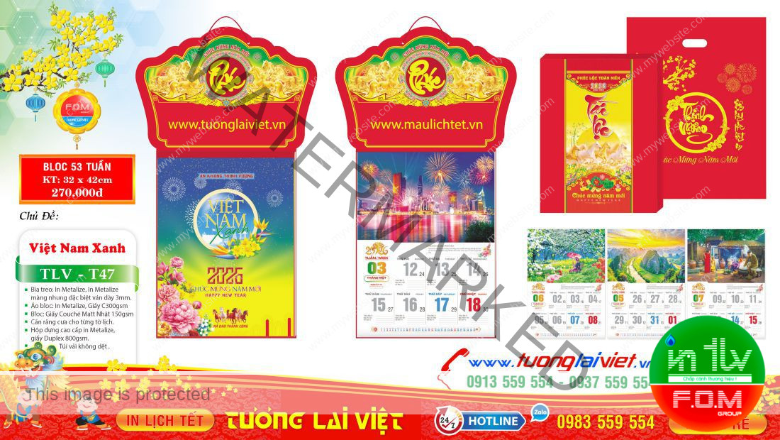 Lịch Bloc 52 Tuần kích thước 30×40 mỗi tờ lịch thể hiện 1 tuần. Bìa Treo Lịch Bloc được in theo công nghệ Metalize Bế Nổi 3D mới nhất. Lịch 52 Tuần Phong Cảnh Việt Nam là Mẫu lịch tết được nhiều đơn vị chọn để làm quà tặng cho khách hàng, bạn bè, đối tác và người thân nhân dịp năm mới.