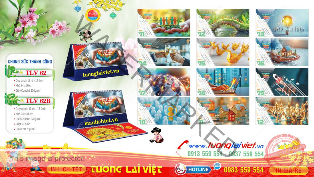 Mẫu Lịch Bàn 13 Tờ Chung Sức Thành Công
